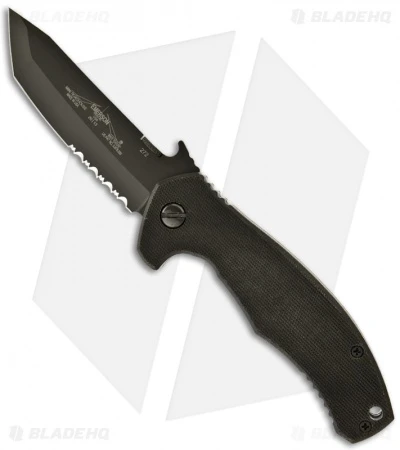 The Roadhouse is unmistakably Emerson in style, build and functionality. The Mini Roadhouse is smaller in size, with the same great shape and characteristics you want. It has a 154CM steel tanto style blade, black finished with a partially serrated edge and the Emerson Wave Opening feature. The handle has titanium liners, textured black G10 and a tip-up carry pocket clip. The Mini Roadhouse feels secure and safe in hand, ready to tackle the job at hand.